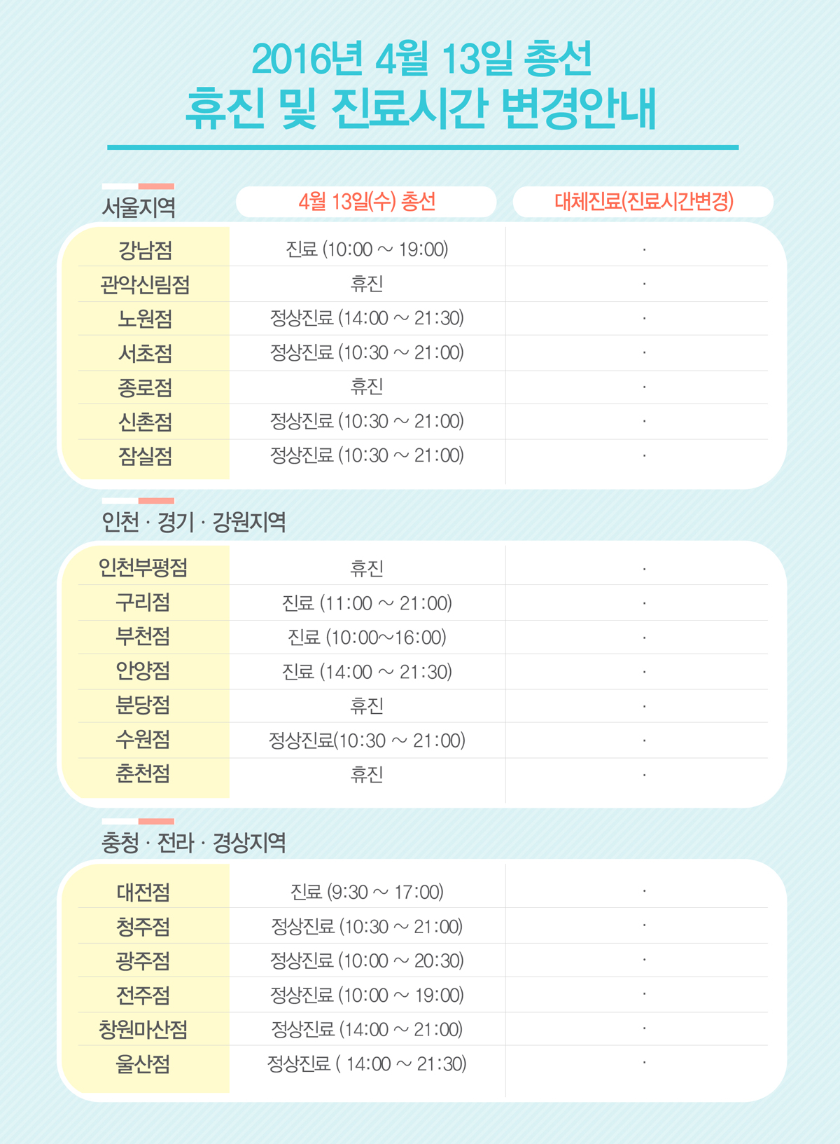 2016년 4월 13일 총선 휴진안내