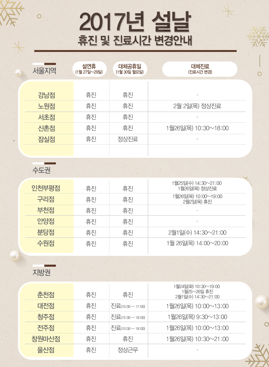 2017설날 휴진 및 진료시간 변경안내