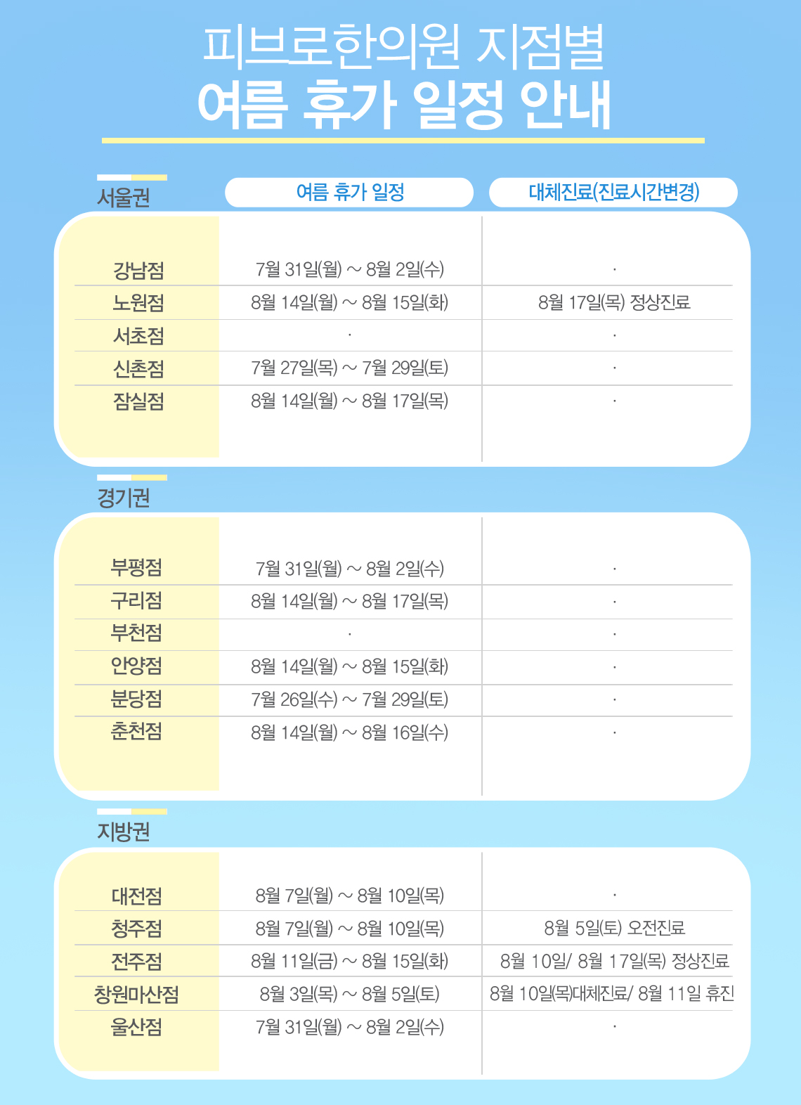 2017년 피브로한의원 여름휴가 일정 안내