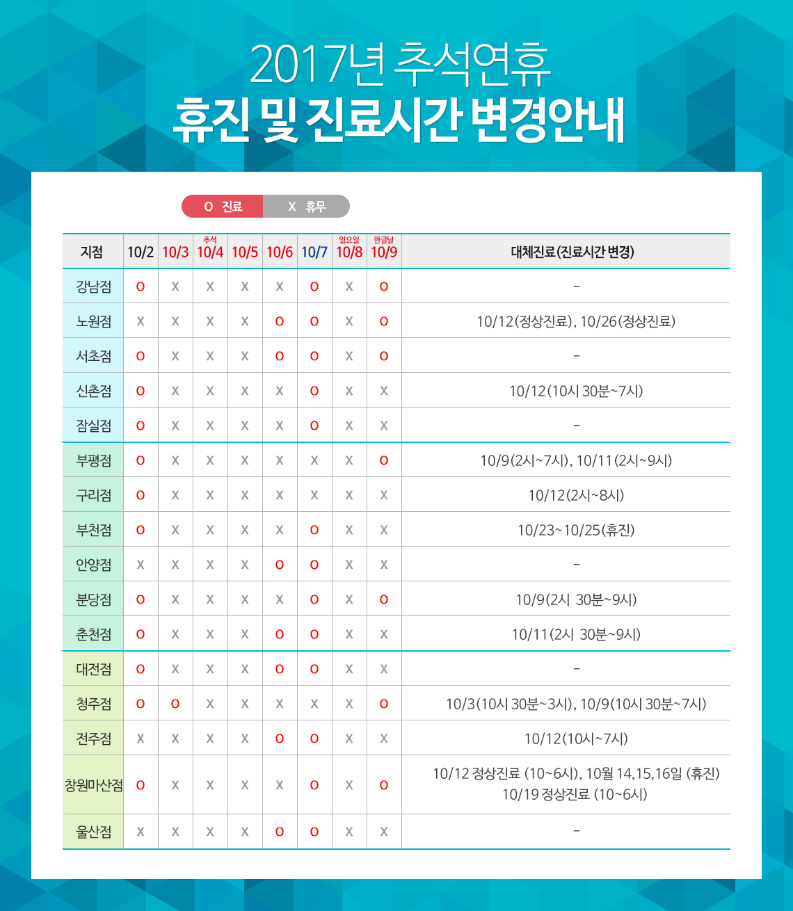 2017년 추석연휴 휴진 및 진료시간 변경안내
