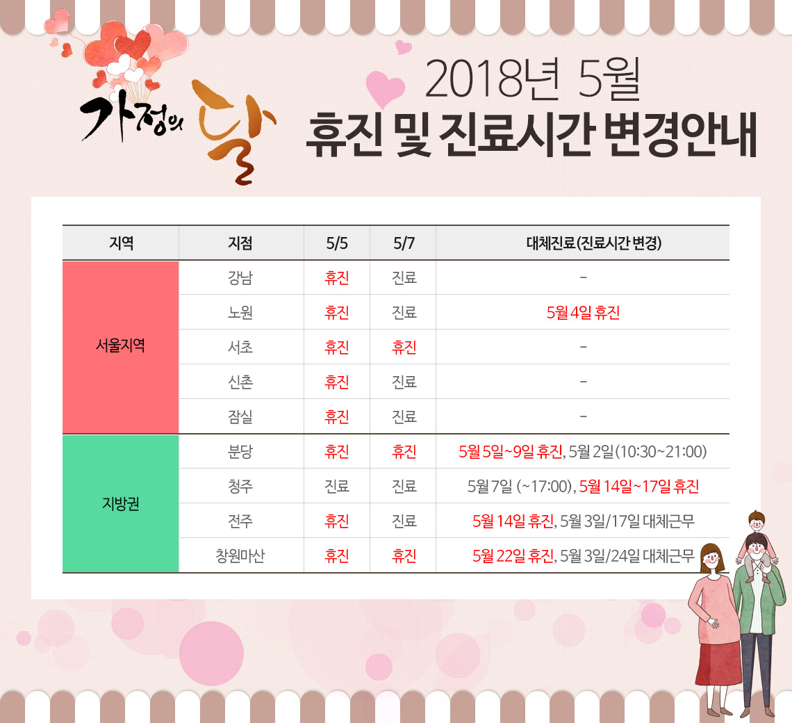 2018년 5월 휴진 및 진료시간 변경안내