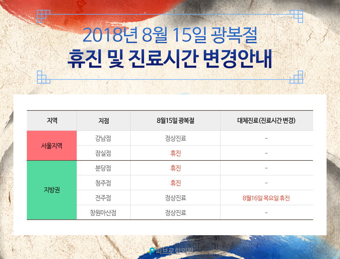 2018 피브로한의원 여름휴가 휴진 일정 안내