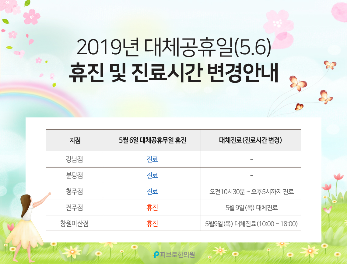 2019년 대체공휴일(5.6) 휴진 및 진료시간 변경안내