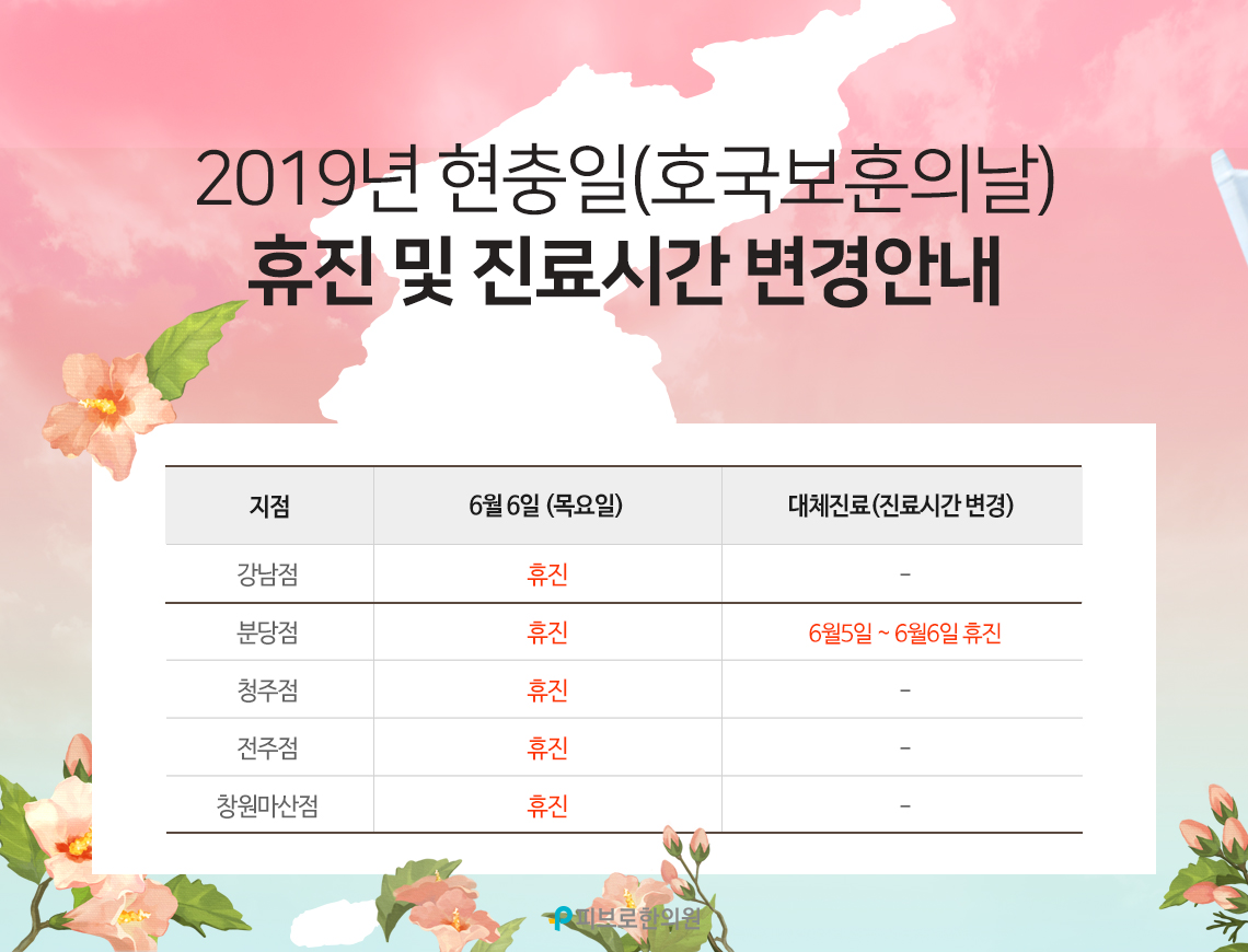 2019년 현충일(6.6) 휴진 및 진료시간 변경안내