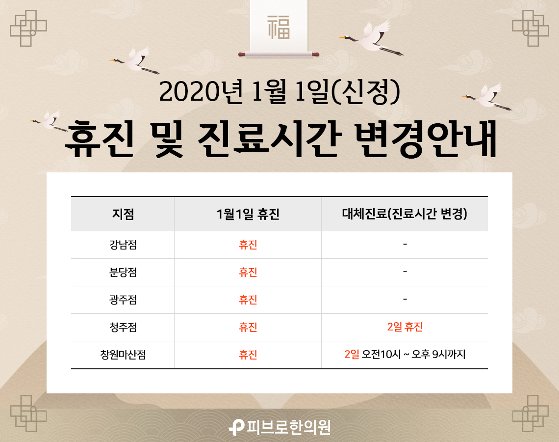 2020년 신정(1월1일) 휴진 및 진료시간 변경안내