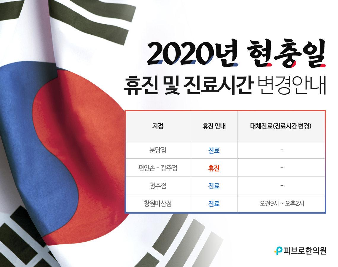2020년 6월 6일 현충일 휴진 및 진료시간 변경안내