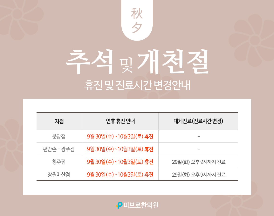 2020년 추석 및 개천절 휴진 및 진료시간 변경안내