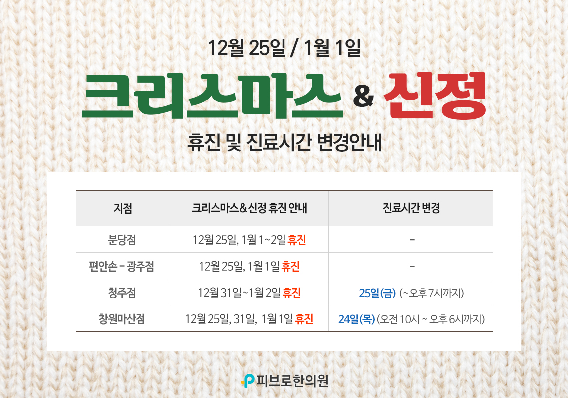 2020년 크리스마스/2021년 신정 휴진 및 진료시간 변경안내