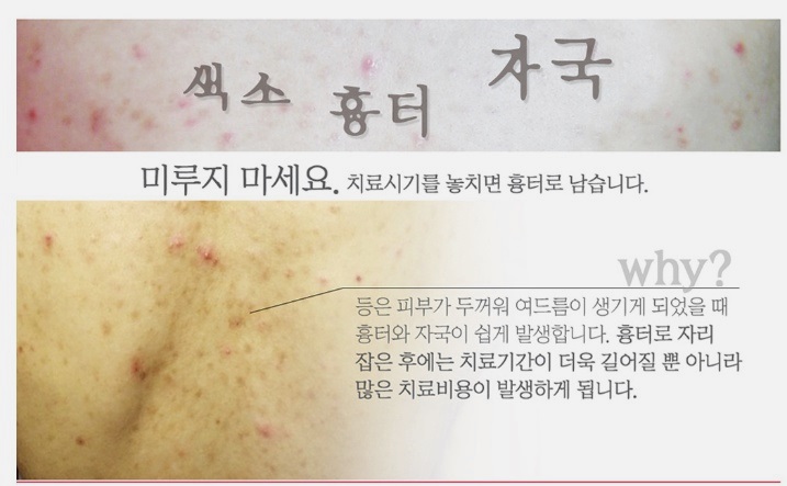 등에 남는 흉터는 얼굴보다 더욱 많이 생길 수 밖에 없습니다.