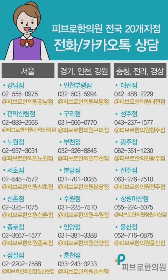 전국 20개 네트워크 피브로한의원에서는