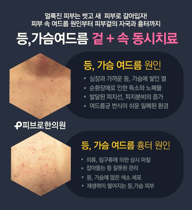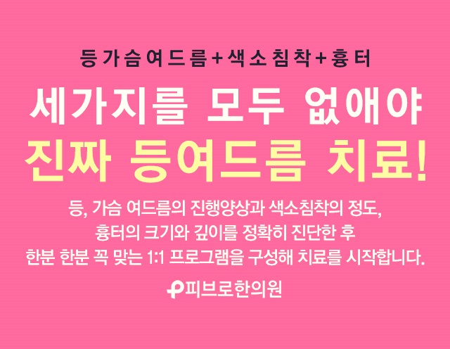 가슴여드름흉터, 색소침착까지 동시에 치료한답니다!