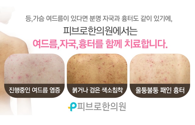 피부에 남은 등가슴여드름, 흉터, 자국 등