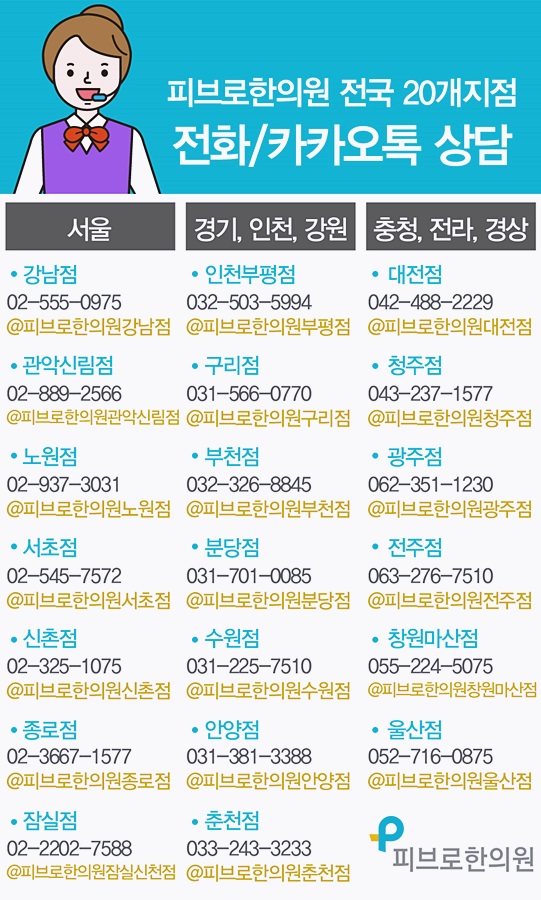 가까운 전국 20개 네트워크 피브로한의원에서는