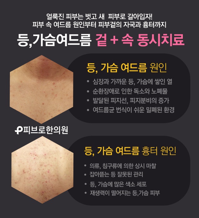 가슴여드름 흉터와 자국까지 깨끗하게!